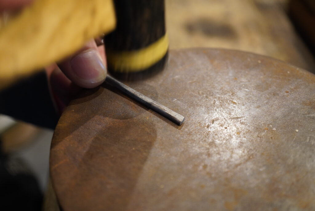 このように、デザインを手作業で叩き入れることで、上品な輝きを放つ