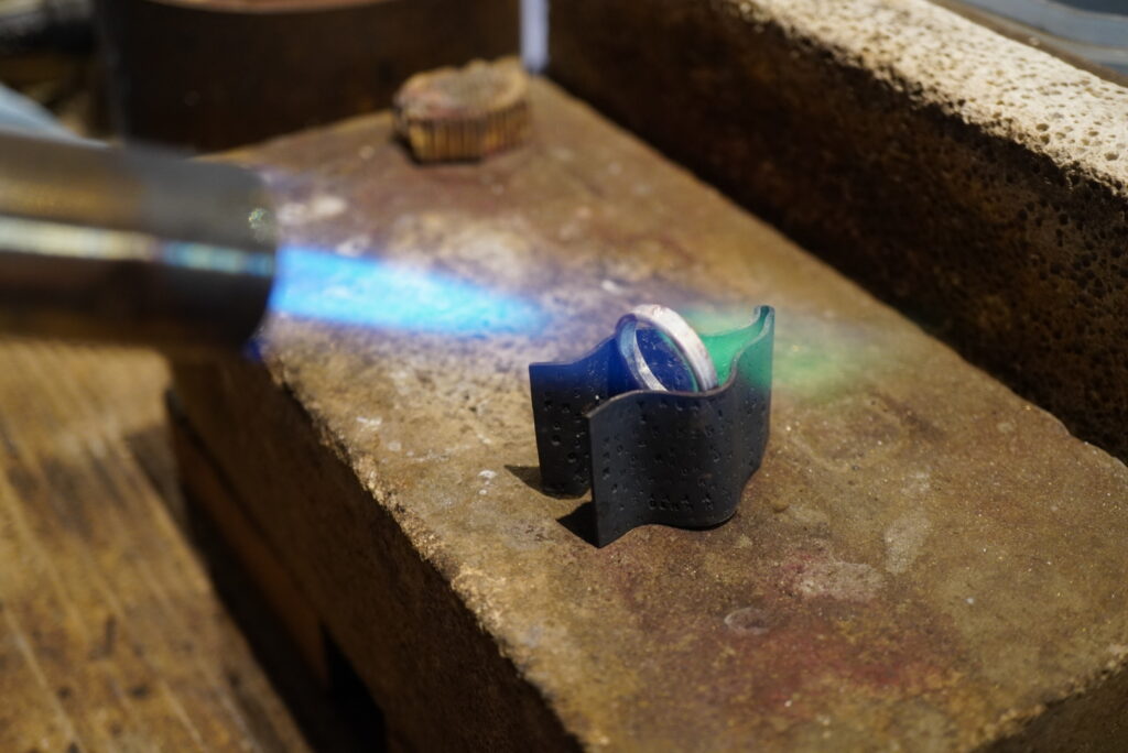 その後、擦り合わせが終わったら溶接(ロウ付け)を行います。