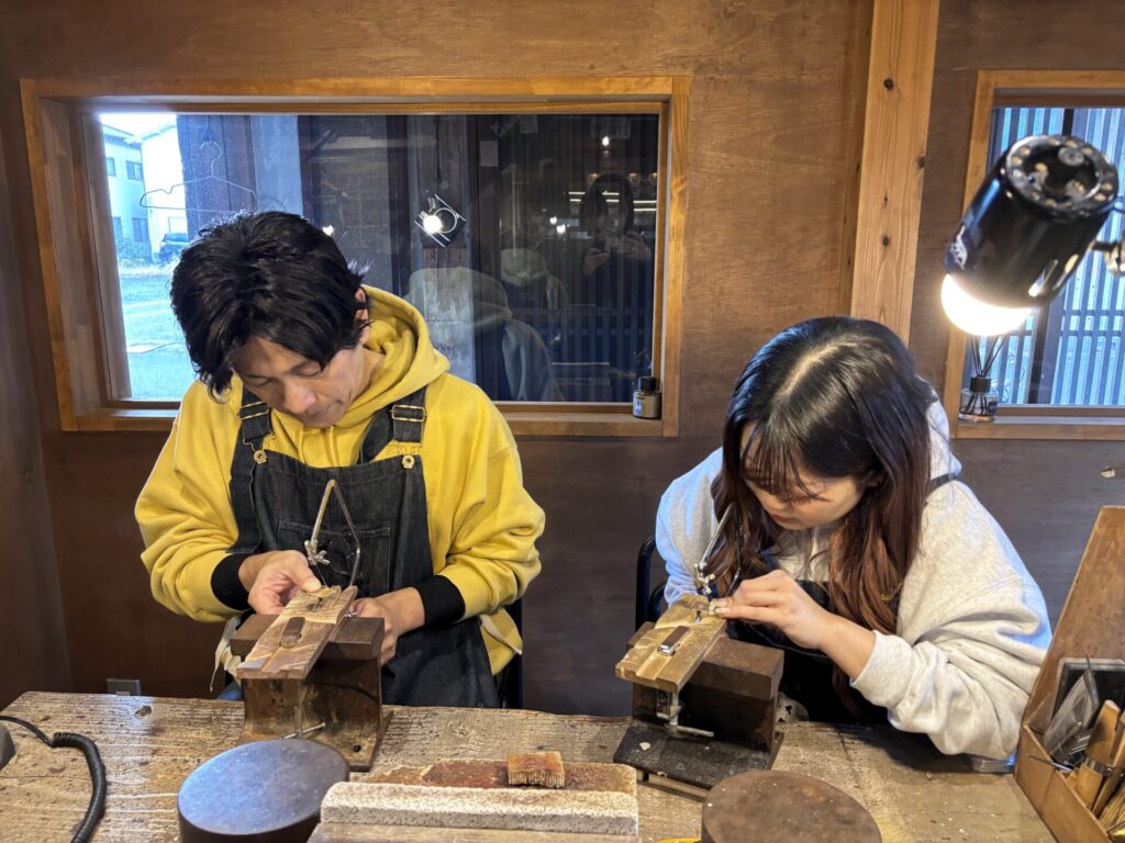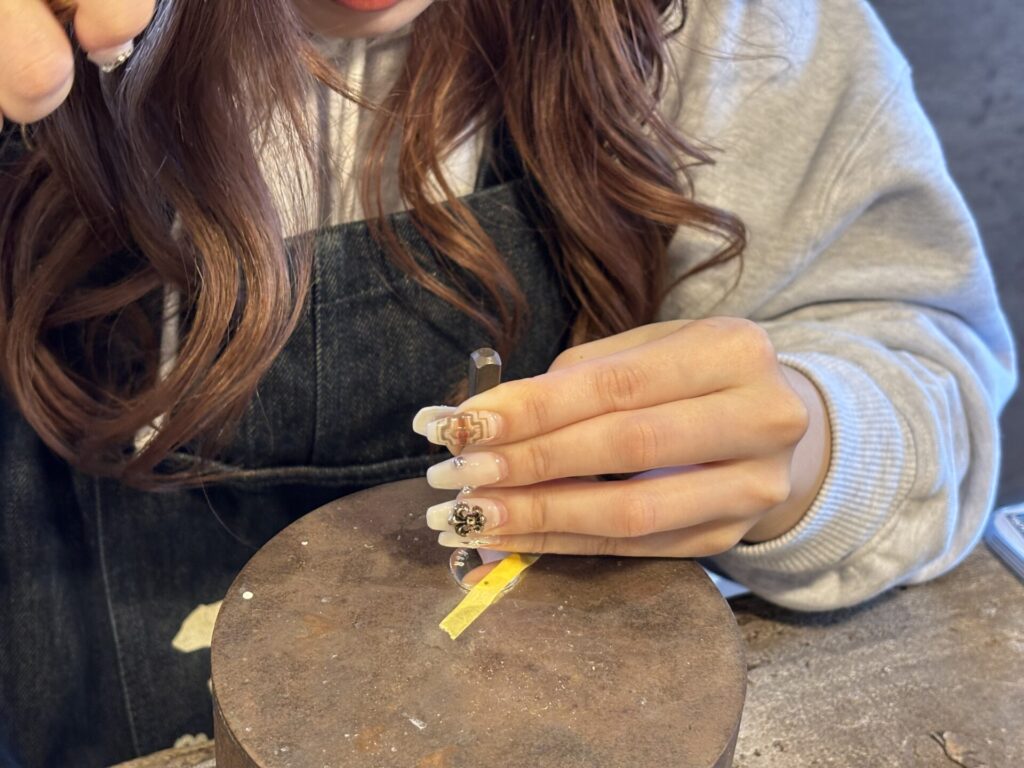 リングやバングルの材料取りとは違い、丸いかたちを切るのは少し難しい工程ですが…