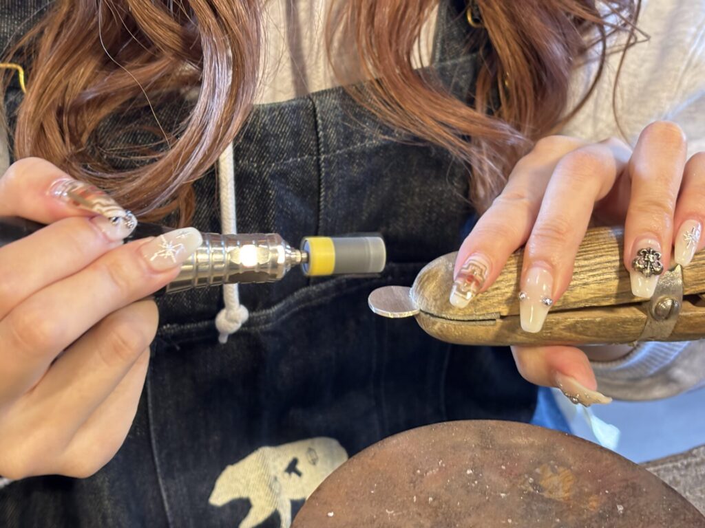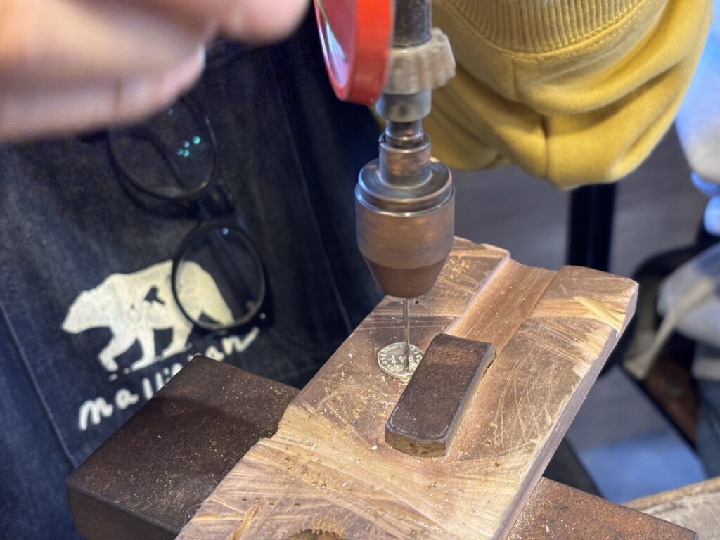 模様入れが終わったら、次にチェーンをつけるための穴を開けていきます。