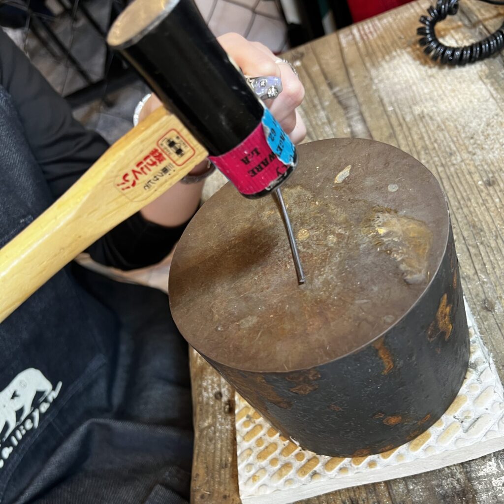 コンコンと全体的に叩いて模様が入っていきます🔨