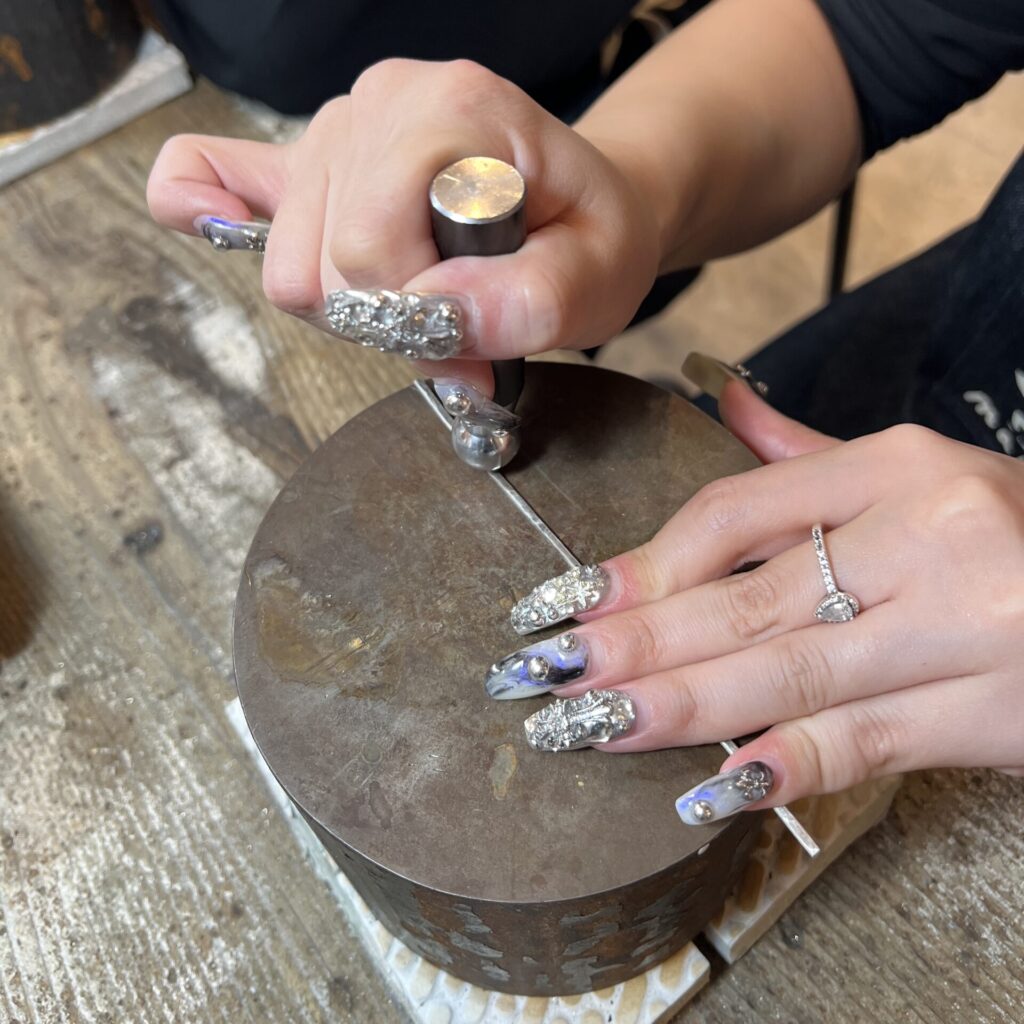 叩いても曲がりきれないところはやっとこを使ってピッタリの形に✨