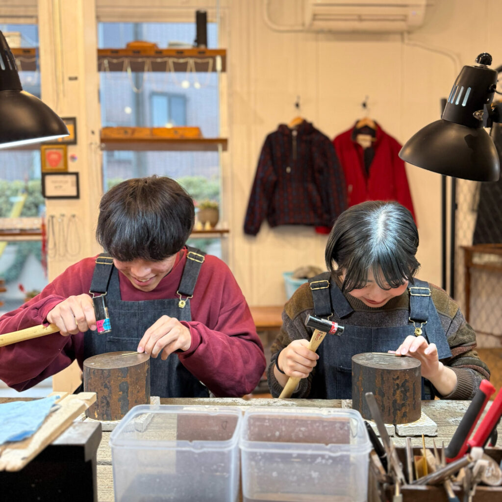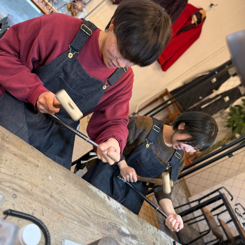 材料が柔らかくなったら、次は金槌を使ってガンガン叩きます🛠