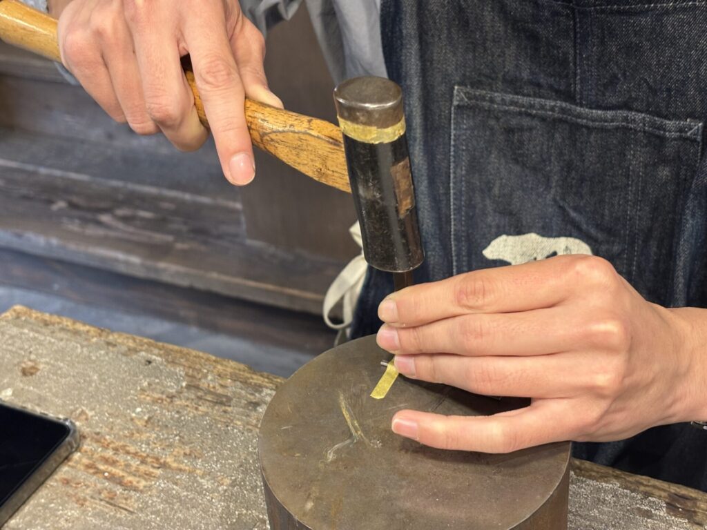 マリーヤンでは、刻印棒と金槌を使い、1文字ずつお客さまご自身の手で打っていただきます😌