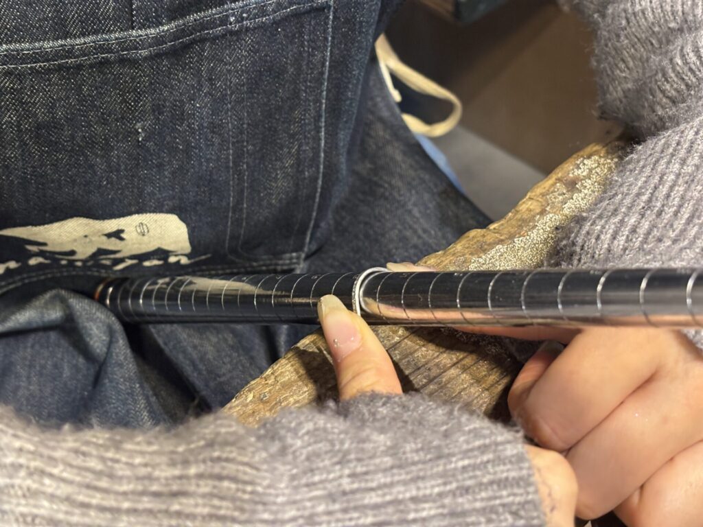 まずは芯金棒という道具を使い、手のパワーでリング状に曲げます。