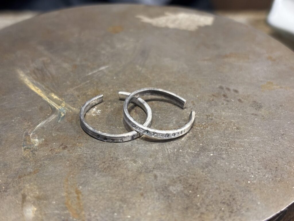 文字を入れたら、リングの形に曲げて溶接していきます💍