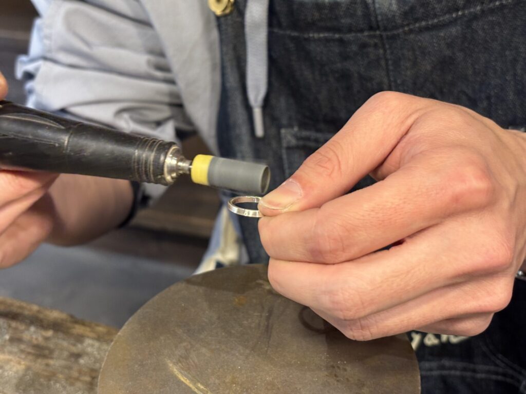 真円になったら、いよいよ研磨作業。リング作りも大詰めです💪🏼