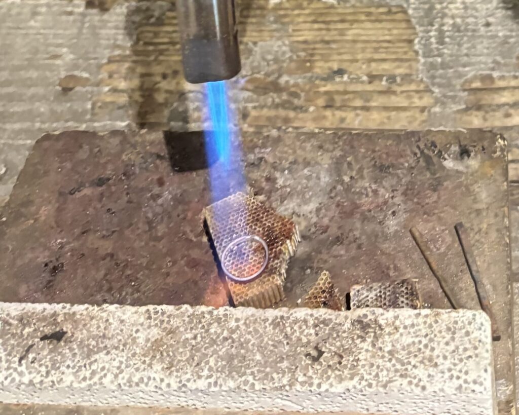 次に、材料を柔らかくするためガスバーナーで火を当てていきます。