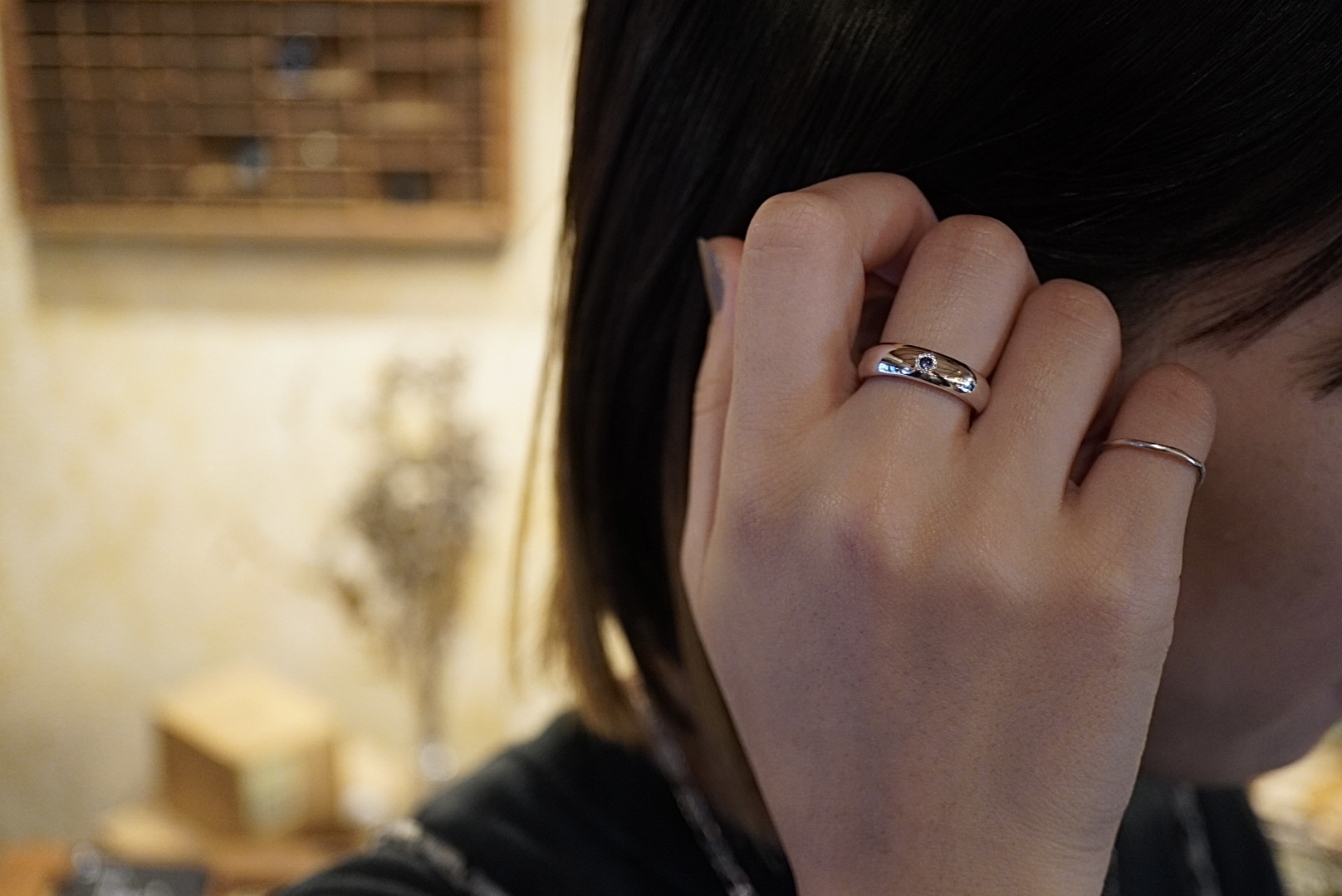 女性の指にもすっきりと映える上品な存在感を放ちます✨