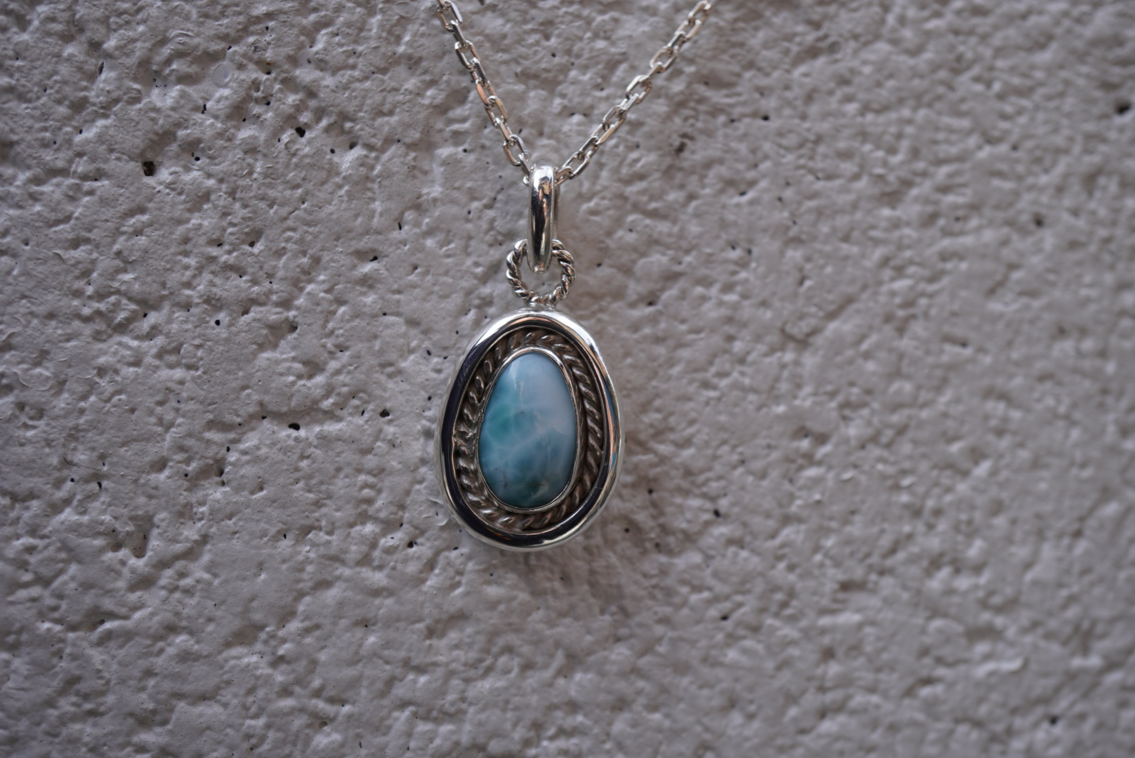 ラリマーの縁にはシルバーの縄をあしらうことで、石の存在をより引き立たせております。